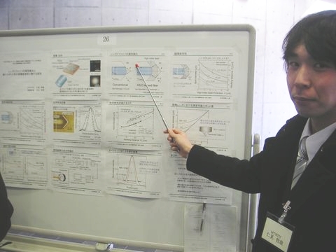 2009年3月2日に情報制御システム科学専攻の最期の修論発表会がアカデミアホールエントランスで開催されました。大学院生4名が、研究成果をポスター発表しました。